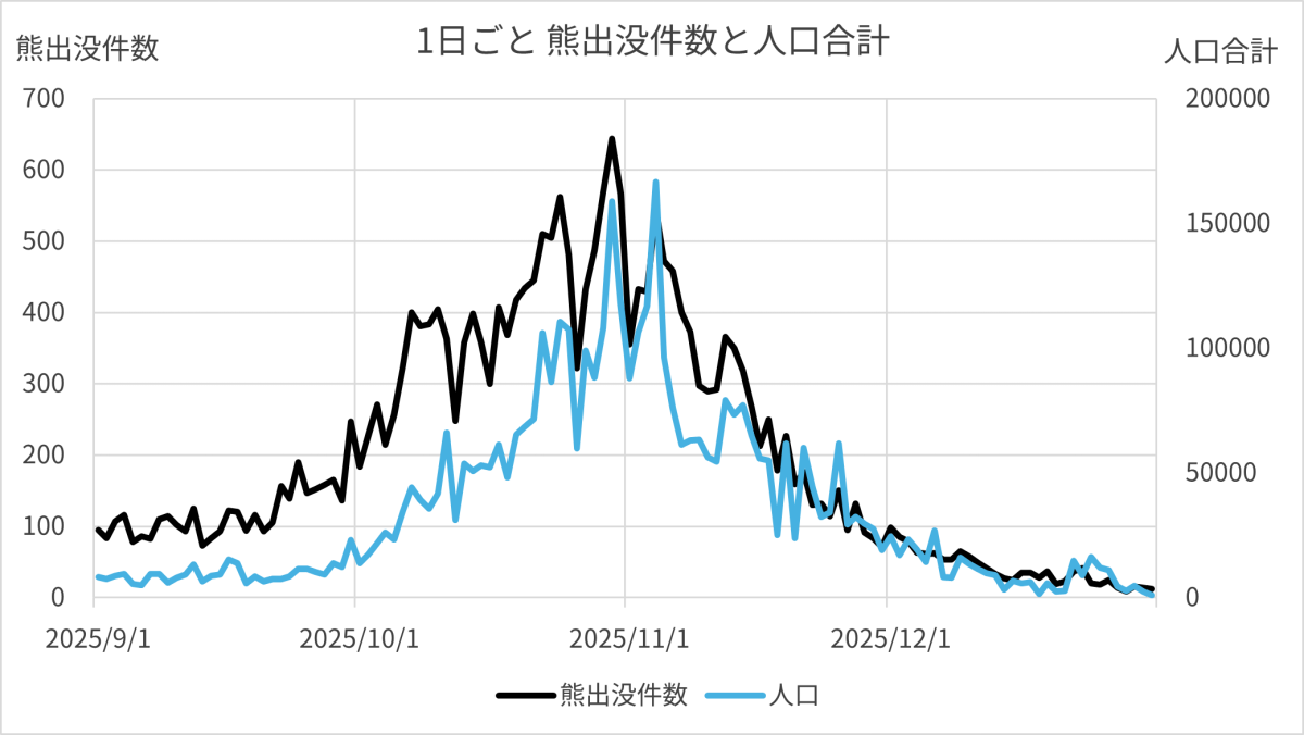 単純に準備が遅れた、あるいは前例が積み上がるのを待っていたためではなく、人口が多い地点での出没事例が遅れて増え始めたためという解釈もできそうです。